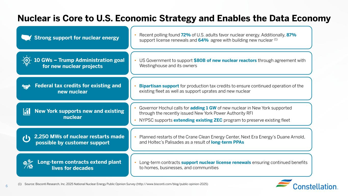 “We achieved one of the highest operating quarters for our nuclear fleet and advanced major milestones like our historic settlement with Maryland for continued operations of the Conowingo dam,” said Joe Dominguez, president and CEO of Constellation. “Momentum continues to build around reliable, clean nuclear energy as a cornerstone of America’s energy strategy. With growing recognition of nuclear’s role in powering the data economy and supporting reliability and affordability for consumers, Constellation is positioned to help our regions and nation grow, while continuing to deliver benefits for our customers, communities, and owners.”