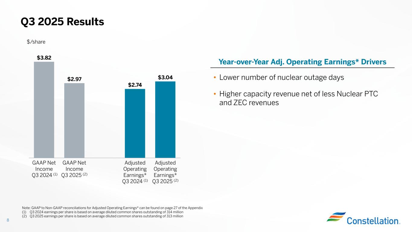 CONSTELLATION REPORTS THIRD QUARTER 2025 RESULTS