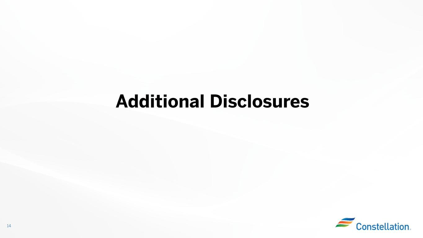 Constellation – Our Assets Are Unmatched Today and Tomorrow 13 Visible, Double-Digit Long-Term Base EPS Growth Backed by Nuclear PTC, Contracts and Customer Margins Best and Leading Operator of Clean, Emissions-free and Low-emissions, Reliable Generation, with Coast-to-Coast Presence Uniquely Positioned to Support Economic Growth, Electric System Reliability and National Security Growing Product Opportunities Through Leading Customer Platform Significant Opportunities to Sell Clean Attributes, Participate in Data Economy, and Grow Clean, Reliable MWs Strong Free Cash Flows and High Investment Grade Balance Sheet