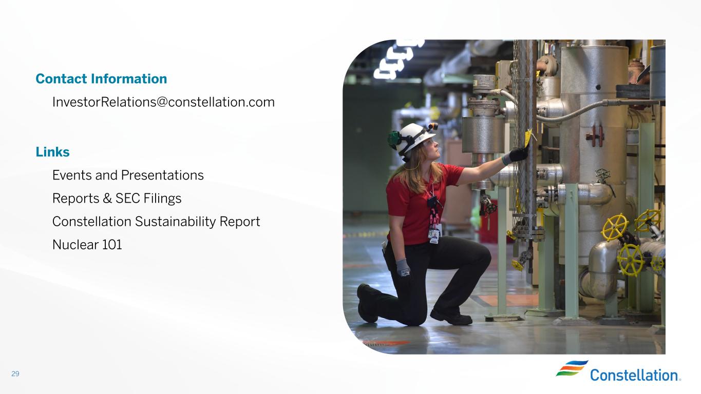 29 Contact Information InvestorRelations@constellation.com Links Events and Presentations Reports & SEC Filings Constellation Sustainability Report Nuclear 101