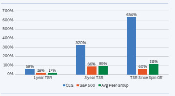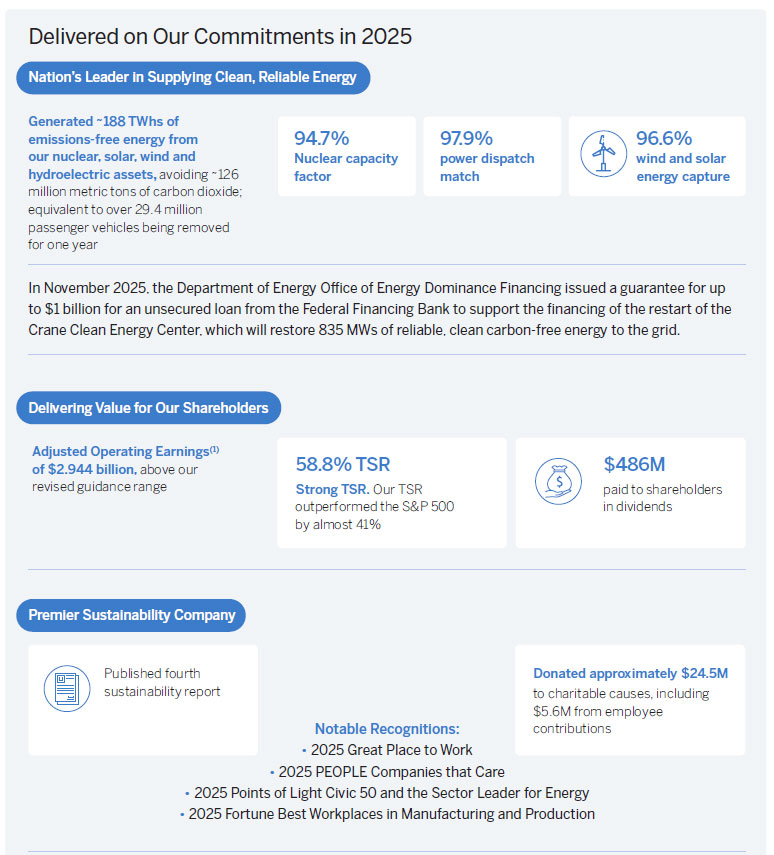As we reflect on this past year, the Board is incredibly proud of our team’s outstanding performance and their tireless efforts to address the growing energy needs of our customers. Through the disciplined execution of our strategy and the consistent delivery of strong operational and financial performance, our best-in-class team continues to create meaningful value for our shareholders. From our separation from Exelon in 2022 through 2025, Constellation has delivered a total shareholder return of approximately 634%. This significant value creation is a testament to our team’s strategic execution and their contributions to America’s clean energy future.