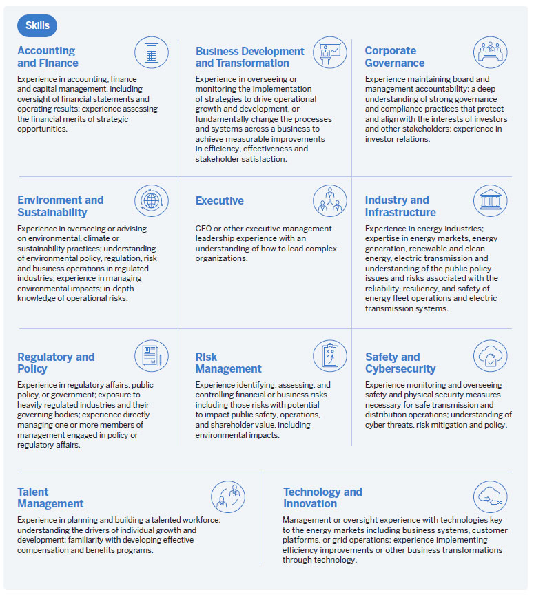 Our Board remains focused on ensuring it is comprised of members whose backgrounds, experiences, and skills collectively enable effective oversight of our long-term strategy, including the integration of Calpine and the expansion of our clean and reliable generation portfolio. Accordingly, our Board aligns its refreshment efforts with the near- and long-term needs of the company, and in January 2026, we welcomed natural gas industry veteran Alan Armstrong to our Board. With our completion of the Calpine transaction, Alan’s deep industry knowledge and leadership will support our oversight as we integrate America’s largest natural gas portfolio into our generation fleet.